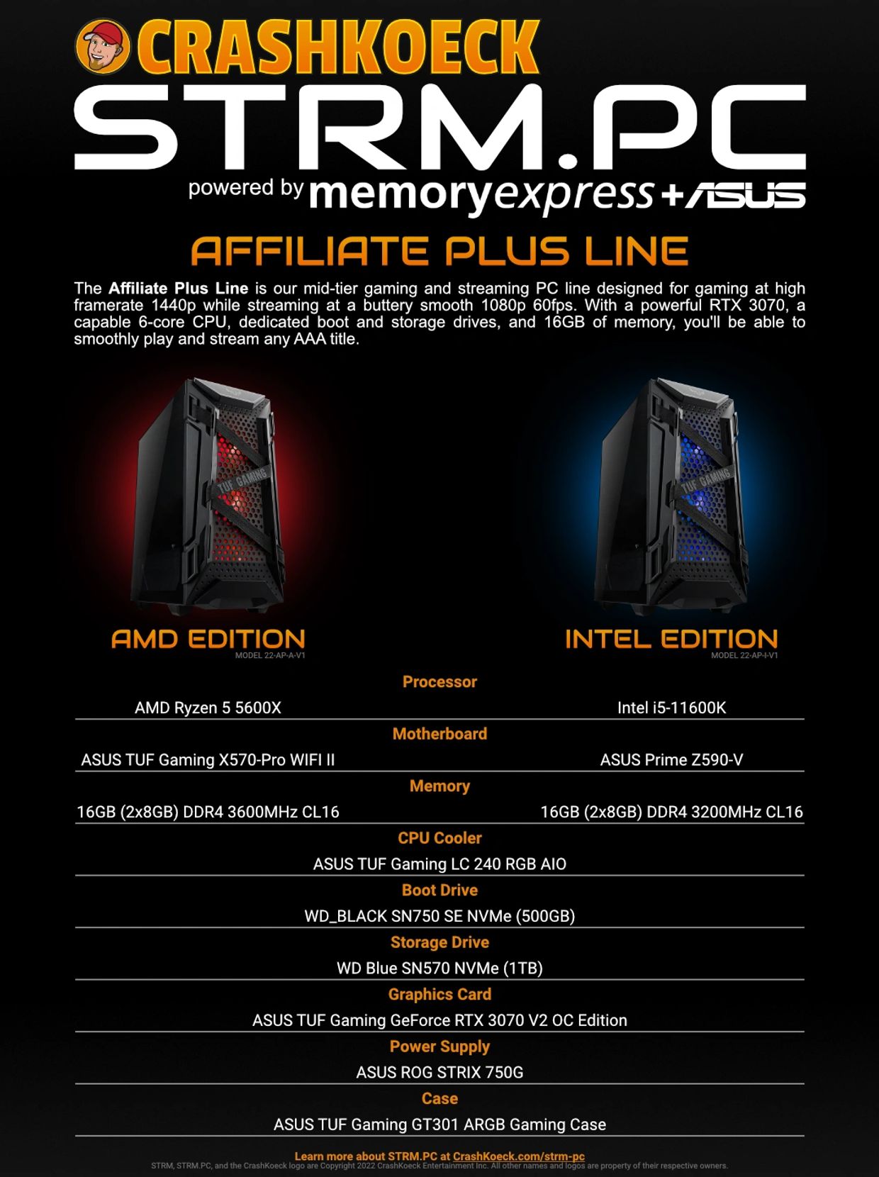 The AFFILIATE PLUS models are the best bang-for-your-buck PCs for both gaming and streaming. They're designed to be able to game at 1440p with high framerates while streaming at 1080p 60fps. If you want the best performance per dollar in a dual purpose system, this is it.